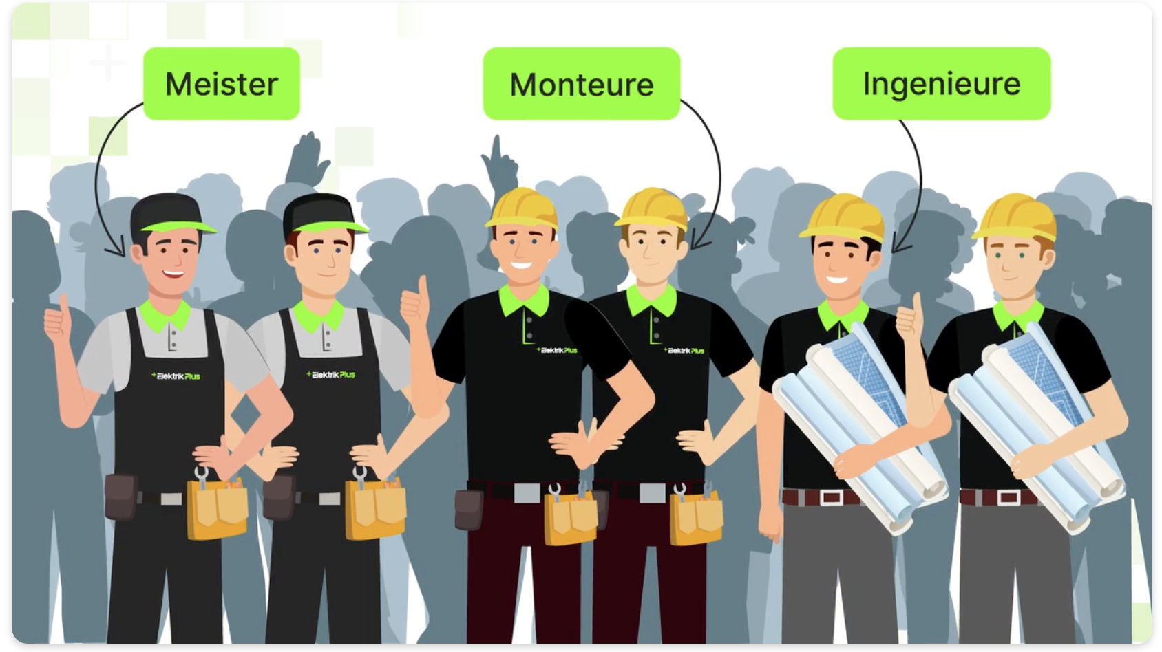 - Elektromeistern, die für die Umsetzung und Kontrolle auf der Baustelle sorgen,